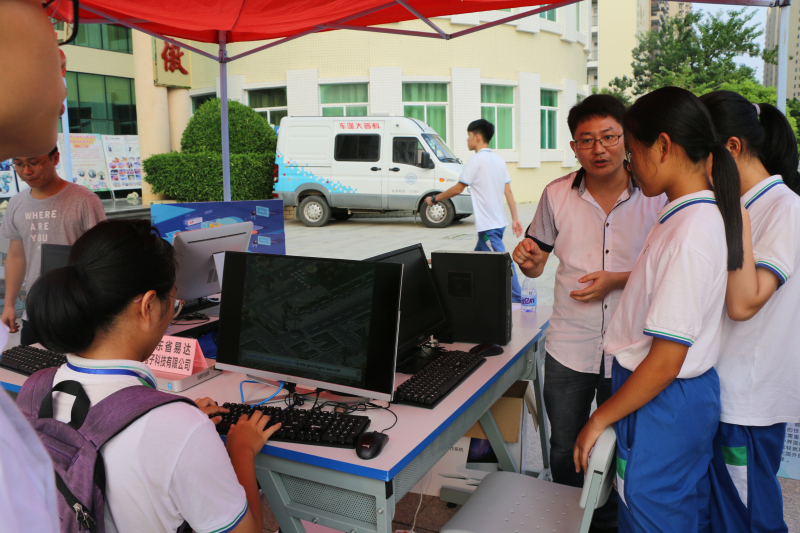 工作人员正在为学生讲解产品运作原理