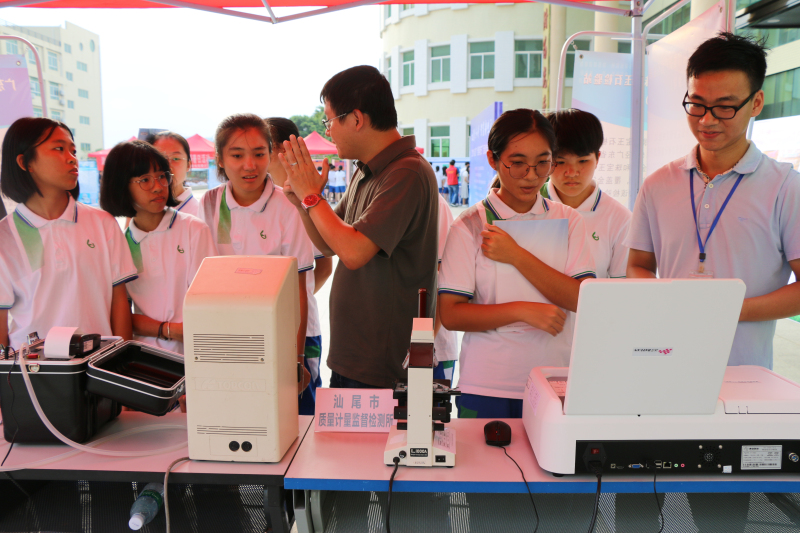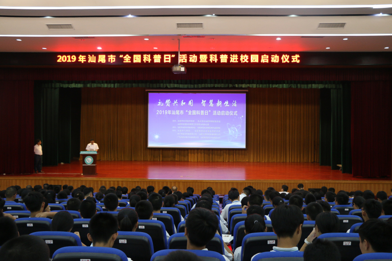 智慧新生活”2019年汕尾市“全国科普日”活动启动仪式。活动由市科协、九三学社汕尾市基层委员会、市全民科学素质工作领导小组办公室主办,市城区科协、华师附中汕尾学校承办,市气象局、市质量计量监督检测所、中广核陆丰核电有限公司、汕尾三峰环保发电有限公司、广东省易达电子科技有限公司、汕尾市智适应科技有限公司联合协办。