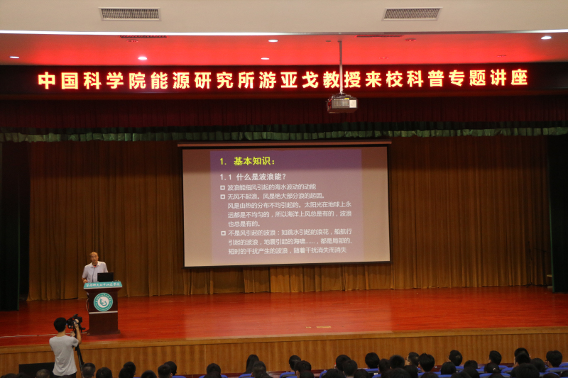 活动邀请中科院广州能源研究所博士生导师游亚戈教授为学生讲授波浪能利用的专题讲座,现场还展示了科普模型、演示新上线科技产品,市科技馆将科普大篷车开到现场为学生体验车载展品。活动受到学生们的热烈欢迎,同学们对科学知识的浓厚兴趣超出我们的想象,以致活动结束还不愿离开。