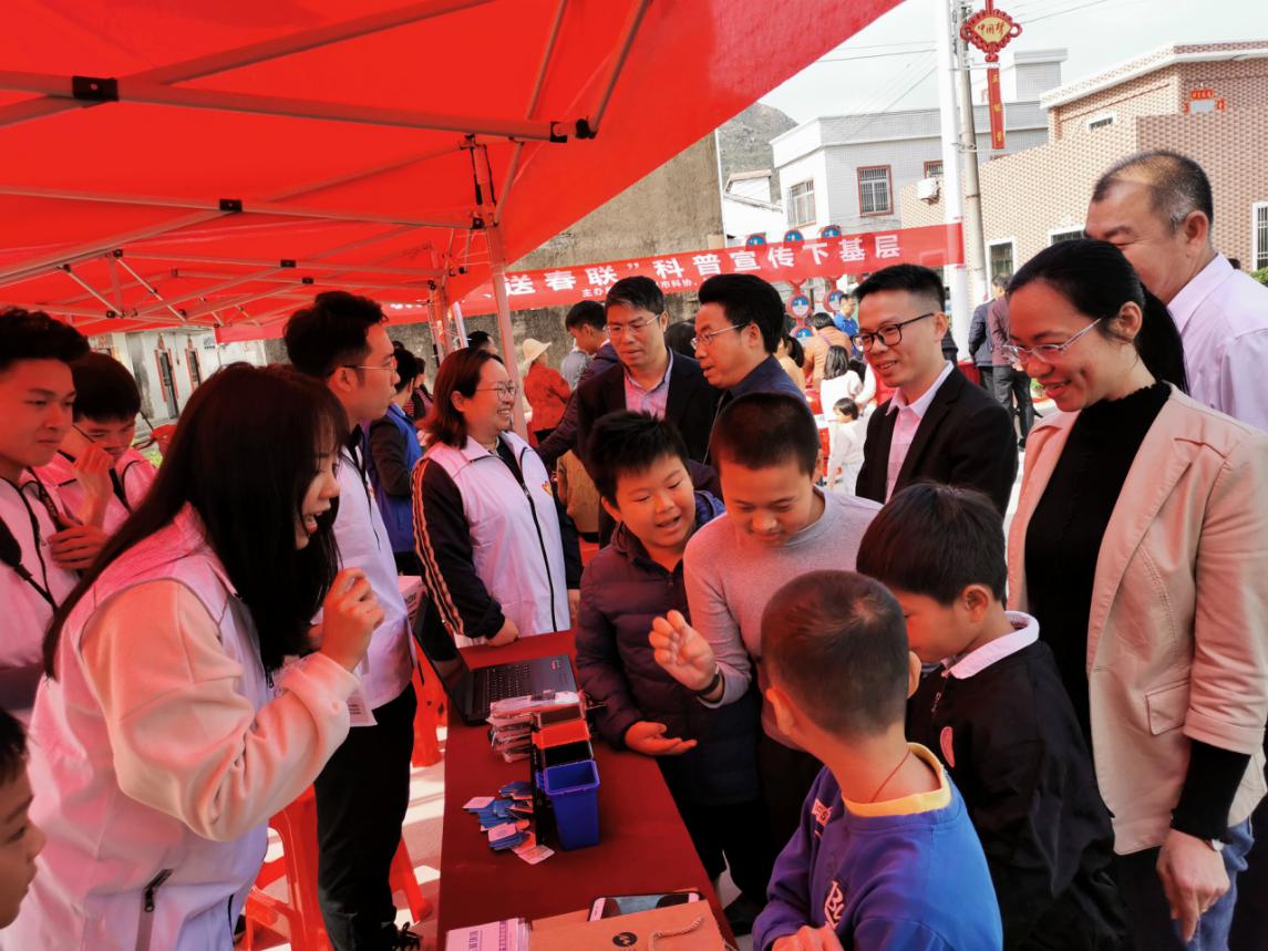 1月9日,在春节临近之际,由市、区两级科协联合主办,城区文化广电旅游体育局、城区新时代文明实践中心、汕尾三峰环保发电有限公司、汕尾市智适应科技有限公司、汕尾仁德中医医院、汕尾市城区马宫街道盐町村共同协办的文化科技卫生“三下乡”暨“迎新春·送春联”文化惠民下基层活动在马宫街道盐町村新时代文明实践站惠民广场举行。