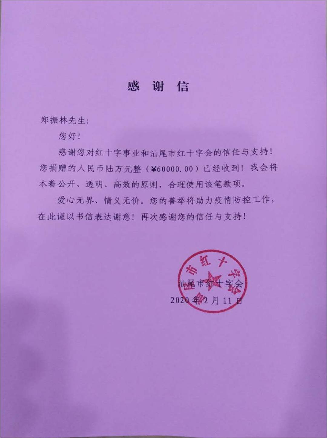 新年伊始,一场突如其来的新冠肺炎疫情打乱了人们的生活,举国上下都投入到这场没有硝烟的战争中。面对疫情,社会各界爱心人士们通过各种途径,为疫情防控贡献自己的一份力量。市科协常委候选人汕尾市振佳建筑安装有限公司法人郑振林,在疫情防控工作中识大体、顾大局,以高度的社会责任感,在积极做好公司防控工作的同时,及时向汕尾市红十字会捐款6万元,支援汕尾疫情防控工作,以实际行动为打赢疫情防控阻击战贡献力量,充分展现了新时代民营企业家的责任与担当。