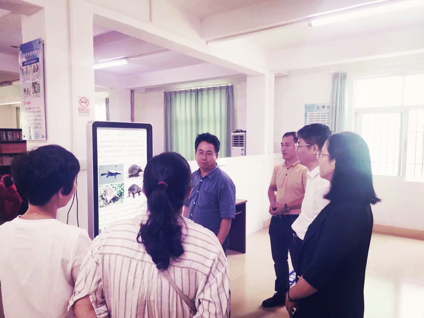 调研组一行先后前往香洲街道、凤山街道、新港街道、马宫街道、捷胜镇、红草镇、东涌镇的综合文化站,通过实地查看和听取现场汇报,详细了解了综合文化站开展科普工作情况,并对电子大屏的优质资源内容进行信息化升级,下载安装科普中国APP,以便辖区居民来综合文化站能随时点击登录并下载“科普中国”获取科普知识。