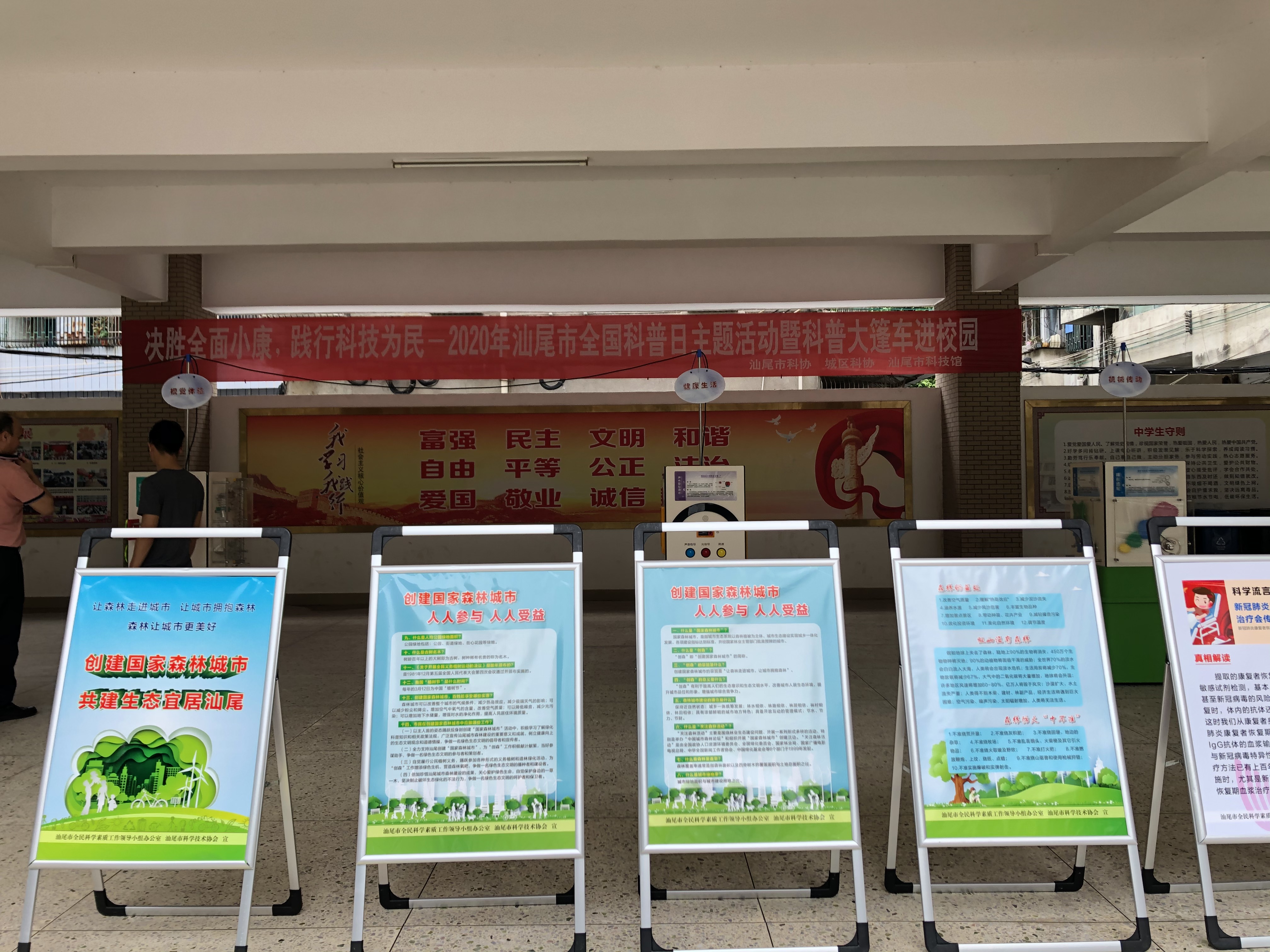 活动期间,科普大篷车工作人员还设立了“创建国家森林城市 共建生态宜居汕尾”创森系列科普宣传展板,为广大师生讲解创建森林城市的意义;放置科学流言展板,揭开科学流言真相,宣传科学原理,引导学生辩证思考,提高辨别能力。