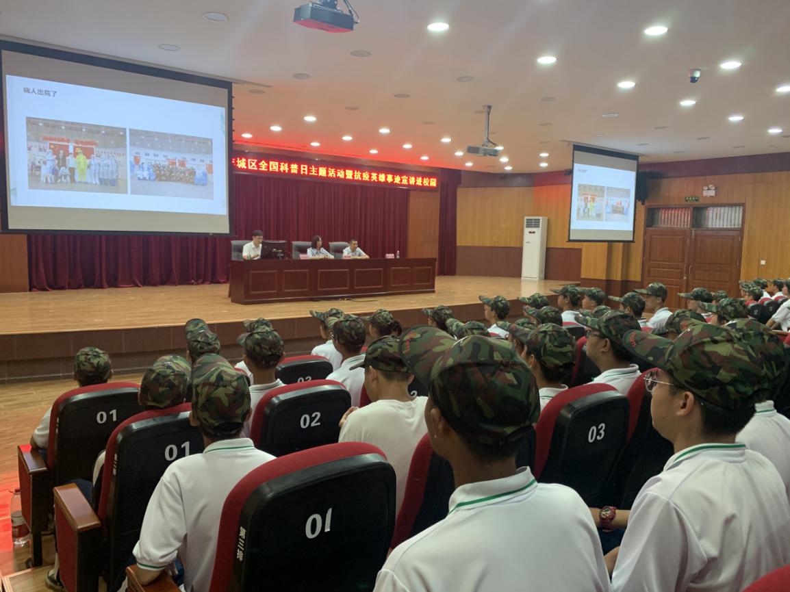 为了弘扬爱国主义精神,发挥战“疫”英雄的榜样示范作用,号召广大师生学习最美逆行者大爱无疆的事迹,9月24日下午,市城区科协在市城区职业技术学校举办“决胜全面小康,践行科技为民”、2020年城区全国科普日主题活动暨抗疫英雄事迹宣讲进校园活动。活动邀请了全国抗击新冠肺炎疫情表彰大会先进个人,市、区两级优秀工作者,汕尾市第二人民医院副主任医师张祥标,为广大师生进行授课。他生动讲述了自己的抗疫经历和感悟,以抗疫精神激励和感召师生,为职校师生上了一节别开生面的“抗疫”爱国主义教育思政大课。