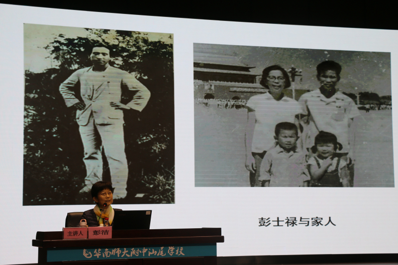 17日晚,华南师范大学附属中学汕尾学校尚智礼堂里座无虚席。彭洁向汕尾学子深情讲述了爷爷彭湃为了革命理想毅然与家庭决裂走上革命道路、为革命事业英勇牺牲和父亲彭士禄从孤儿成长为科学家、为中国核动力事业默默奉献、顽强拼搏的故事。一张张珍贵的历史照片,一段段感人肺腑的往事,带领着大家走进前辈们的内心世界,引领着大家传承科学家的爱国情怀。为了新中国、为了新中国的核事业,彭家两代人把生命和一切都交给了党,交给了国家。当重病缠身的彭士禄在镜头中喊出“我爱核事业”的时候,很多人流下了热泪。在互动环节,不少学生踊跃举手提问,彭洁一一回应,并勉励他们努力学习、报效祖国。