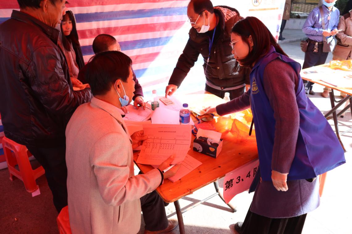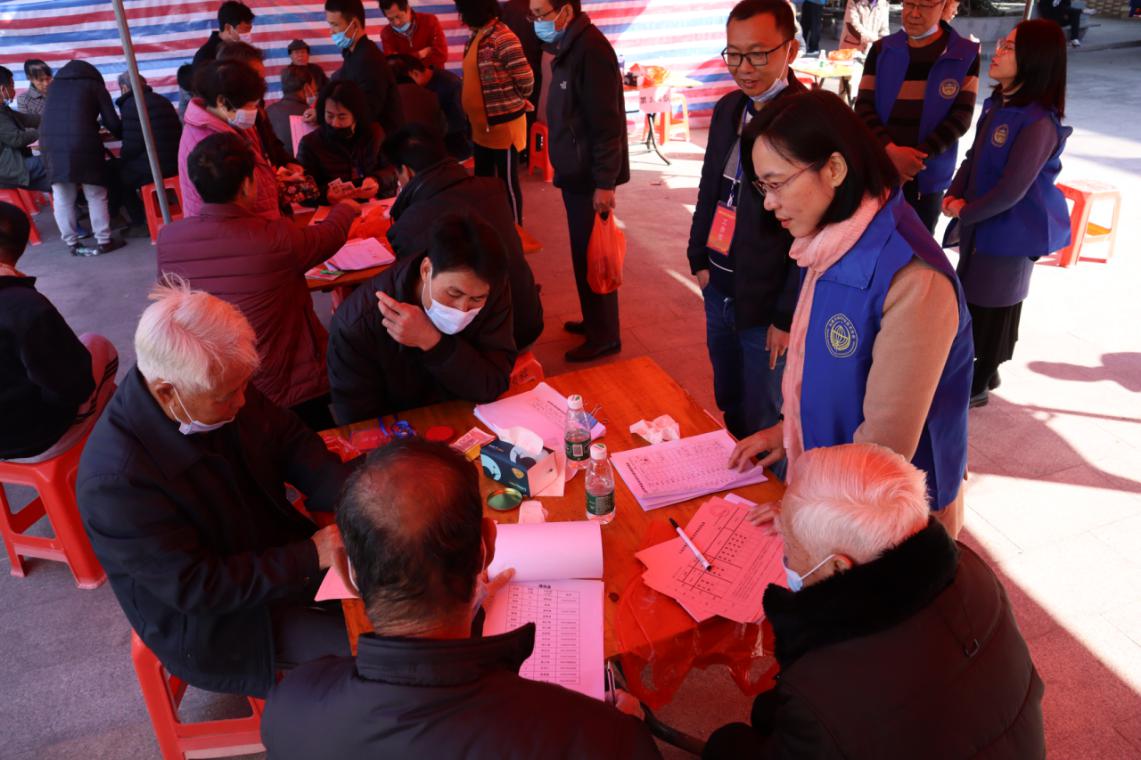 按照区委组织部的相关通知要求,2021年1月14日,区科协常务副主席廖海娜同志带队到“双报到双服务”挂驻村捷胜镇大流村开展村“两委”换届选举志愿服务活动。在选举现场,10多名身穿科技蓝背心的志愿者为村民签到登记,检测体温,发放口罩。通过志愿者活动,协助大流村换届选举工作顺利进行,体贴周到的服务引得在场的群众纷纷点赞。