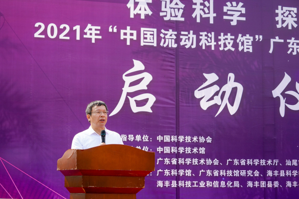最后吴焕泉巡视员作了讲话,他说,海丰县是有着悠久红色文明的热土,在海陆丰这片热土上孕育出了彭湃、马思聪、黄旭华等众多名人,今年是建党一百周年,也是“十四五”的开局之年,亦是即将宣布第一个百年目标实现、迈向第二个百年目标的奋进之年。我们把2021年巡展活动第一站安排在海丰县,为本次巡展活动赋予更加特别的意义。近几年,海丰县经济发展的同时,科普工作也做的有声有色,希望海丰县继续推动科普基础设施建设,做强各类科普阵地,以满足公众日益高涨的学习科学的需求,这对提升海丰县全民科学素质,将起到十分重要的推动作用。