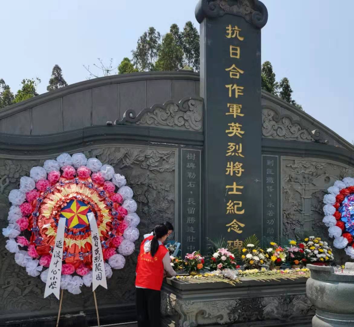 在庄严肃穆的英烈陵园,青年党员代表向抗日合作军英烈将士纪念碑敬献花篮。全体参加人员在纪念碑前肃立,垂首默哀致敬,深切悼念烽火年代中抗击日寇为国殉难的英烈们,深切追忆烈士们的丰功伟绩,表达对革命烈士的感恩怀念之情。