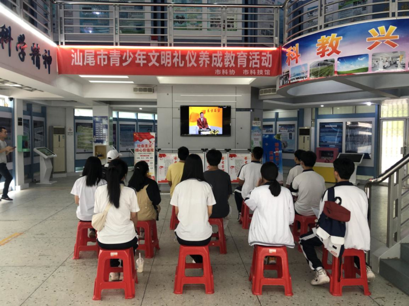 为推进未成年人思想道德建设,引导未成年人从小养成文明礼仪习惯,7月20日市科协在市科技馆开展青少年文明礼仪养成教育活动。汕尾中学12名学生代表应邀参加了活动。