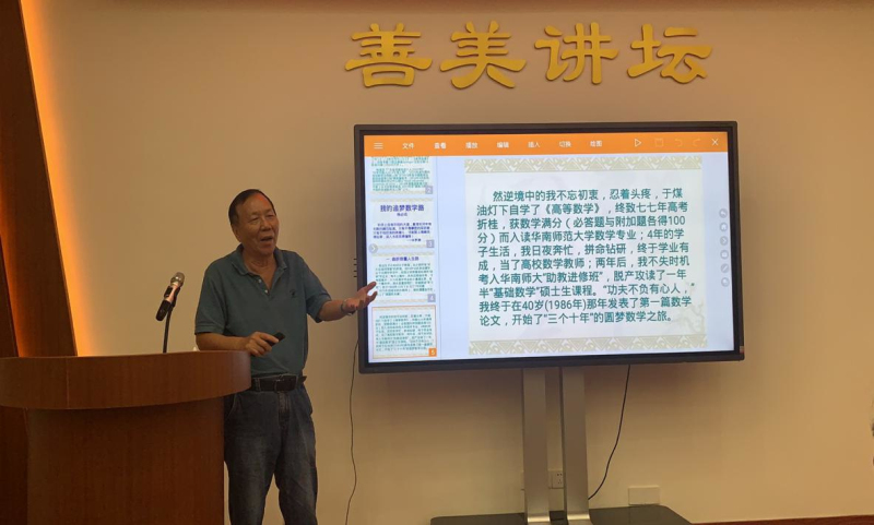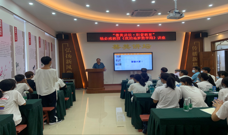 9月11日上午,城区科协联合城区新时代文明实践中心特邀汕尾市乡贤、我国著名数学家杨必成教授在城区新时代文明实践中心善美讲坛开展讲学,活动组织60多名中小学生及科普工作者聆听了杨必成教授题为《我的追梦数学路》的励志讲座。