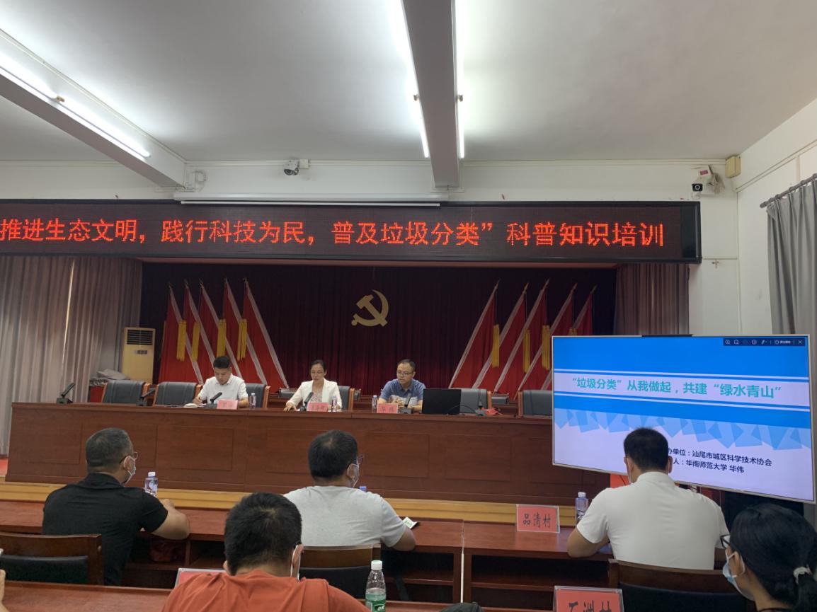 本次培训邀请到华南师范大学在环保领域有丰富经验的教授,通过PPT的形式讲解垃圾分类的目的和意义,共同学习《汕尾市城乡生活垃圾分类管理条例》,介绍垃圾分类体系、可回收物、厨余垃圾、其他垃圾和有害垃圾的正确分类方法,以及垃圾分类时的常见问题,使大家对垃圾分类的必要性和重要性能够有一个清晰的认识,对如何正确进行垃圾分类有更深层次的了解。