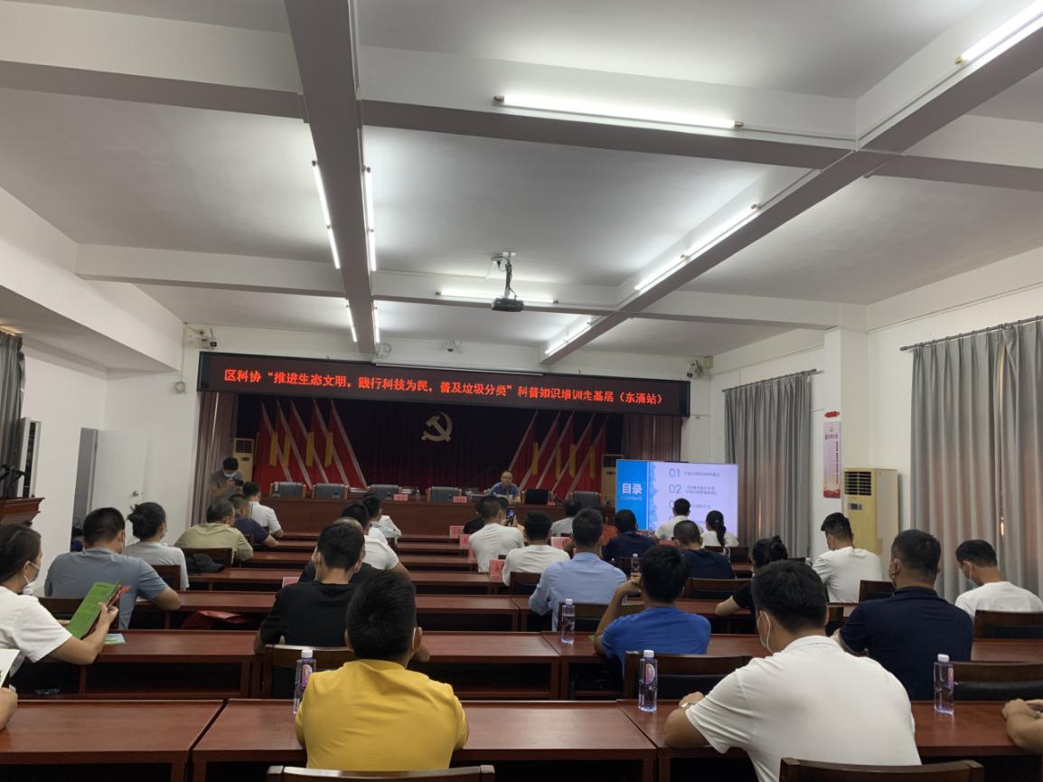 9月18日,垃圾分类科普宣传巡回培训第一站在东涌镇举办开班仪式。开班仪式上城区科协常务副主席廖海娜作了开班动员讲话、城区东涌镇副镇长罗宇主持会议。参加培训人员有镇、村(社区)“两委”干部、村民代表共约50多人。