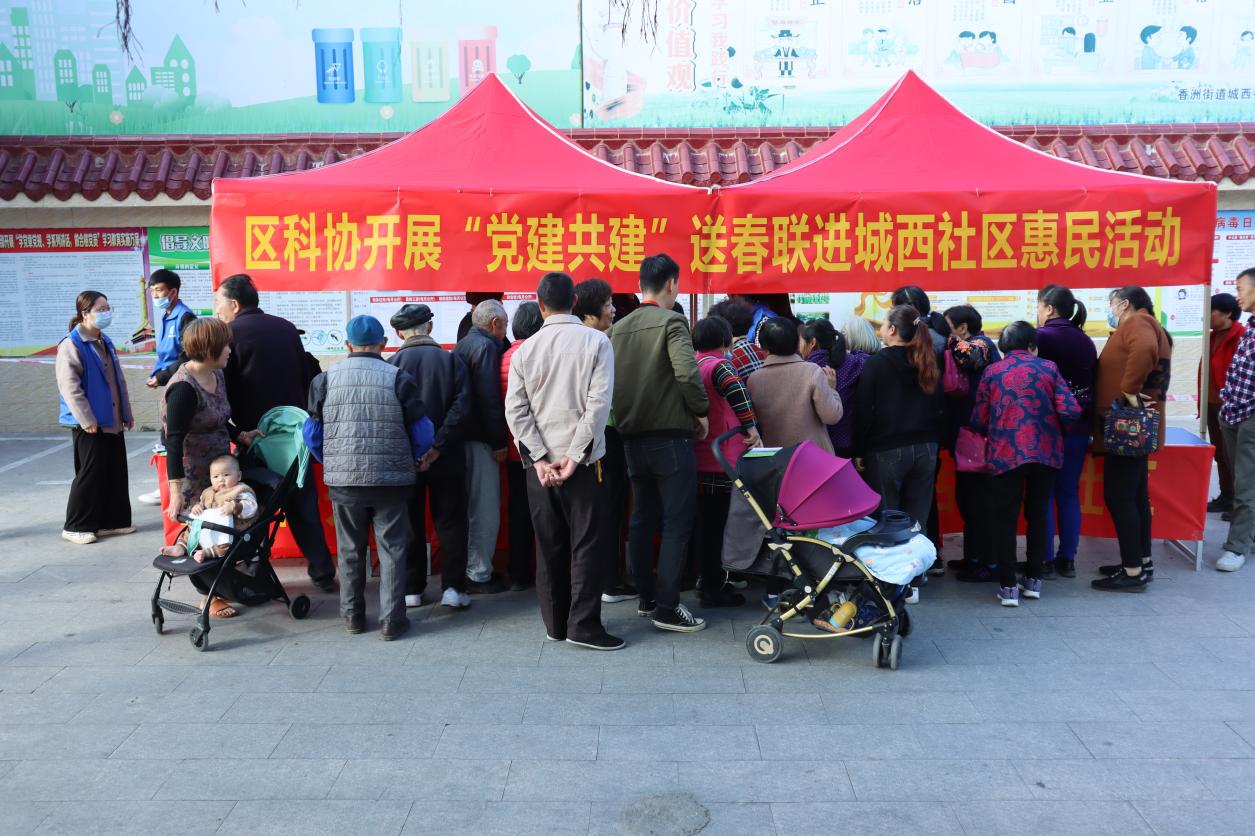 为迎接2022年的到来,营造欢乐喜庆、温馨、和谐的节日气氛,弘扬中华民族传统文化,12月30日,城区科协到“双报到、双服务”挂驻共建社区——香洲街道城西社区开展“党建共建”送春联进社区惠民活动暨“创森”科普知识宣传活动,给城西社区居民送上新春的祝福。