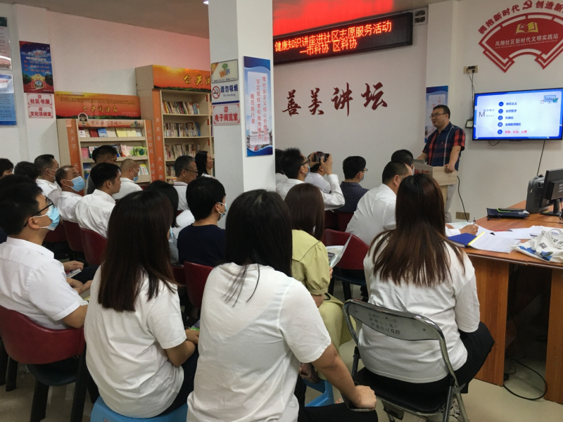 为贯彻落实市委、市政府创建文明城市的工作精神。结合2022年全国科技活动周活动,为进一步提升社区居民科学素养,普及健康生活方式,预防疾病的发生。市科协、城区科协于5月24日下午,在城区凤翔社区组织开展健康科普知识讲座,邀请汕尾市人民医院主任医师黄秦邶同志作“从新冠肺炎谈健康”主题科普知识讲座,凤翔社区干部及40余名社区群众代表参加了本次活动。