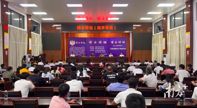 随后,秦启伟在陆丰市城东镇大礼堂开展博士讲坛,作题为《我国的渔业产业发展现状与趋势》《我国水产病害发展现状与防控技术》的报告。报告介绍了我国渔业产业发展的现状、广东省渔业发展的现状以及未来渔业发展的趋势。在谈及我国水产病害问题时,秦启伟仔细分析了目前影响我国渔业发展的主要细菌性、病毒性以及寄生虫相关疾病,并提出了相关防控策略,养殖户也针对养殖生产过程中出现的问题与专家现场互动交流,讲坛现场氛围热烈。