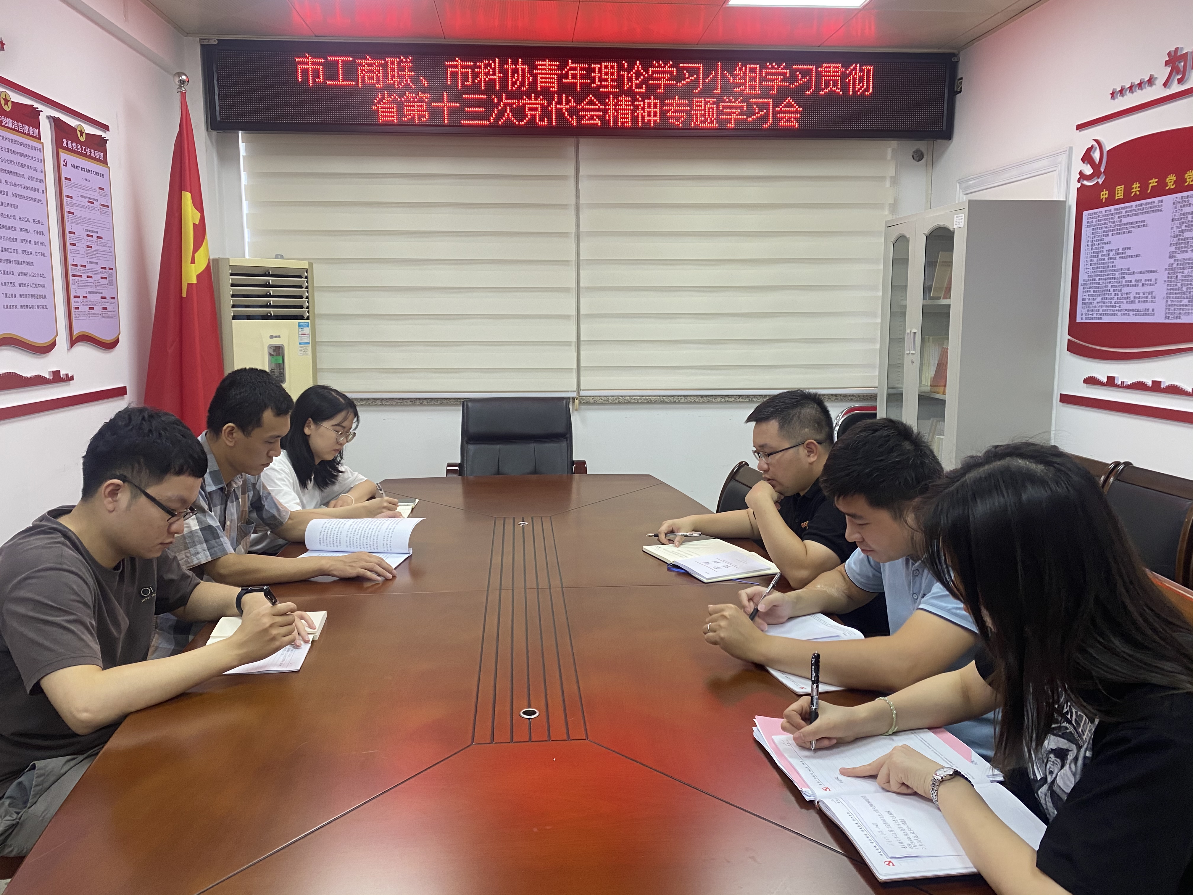 6月27日,市工商联、市科协青年理论学习小组开展集中学习活动,原原本本学习省第十三次党代会报告,并结合实际分别谈了心得体会,进一步学深悟透省党代会精神。