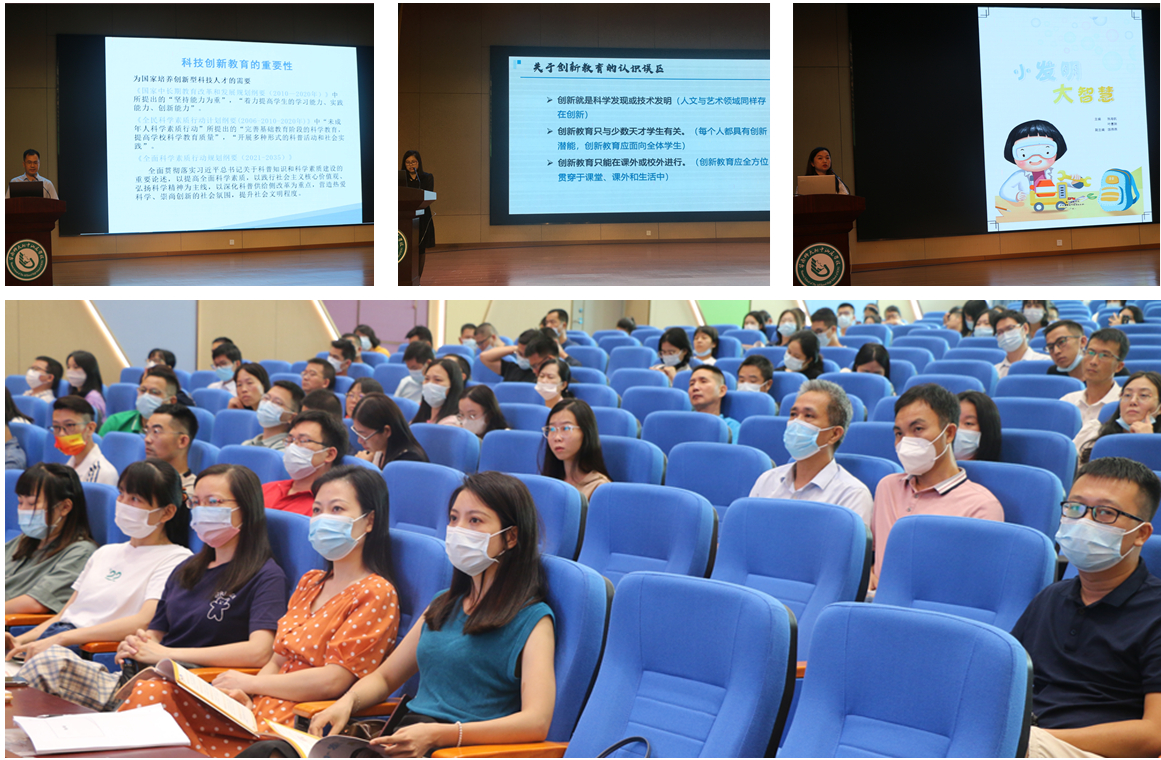 本次培训,来自陆河县实验小学的张海帆老师也为大家作了《案例引领,创意课堂》主题讲座。张老师以自身辅导学生获奖的案例为引子,启发引导科技辅导员们怎样在课堂进行创新引导,分享了学生在制作过程中的一些想法,遇到的困难和逐步克服的过程,内容由浅入深,环环相扣,让科技辅导员更加懂得了在平时教学中如何引导启发学生发明创新。