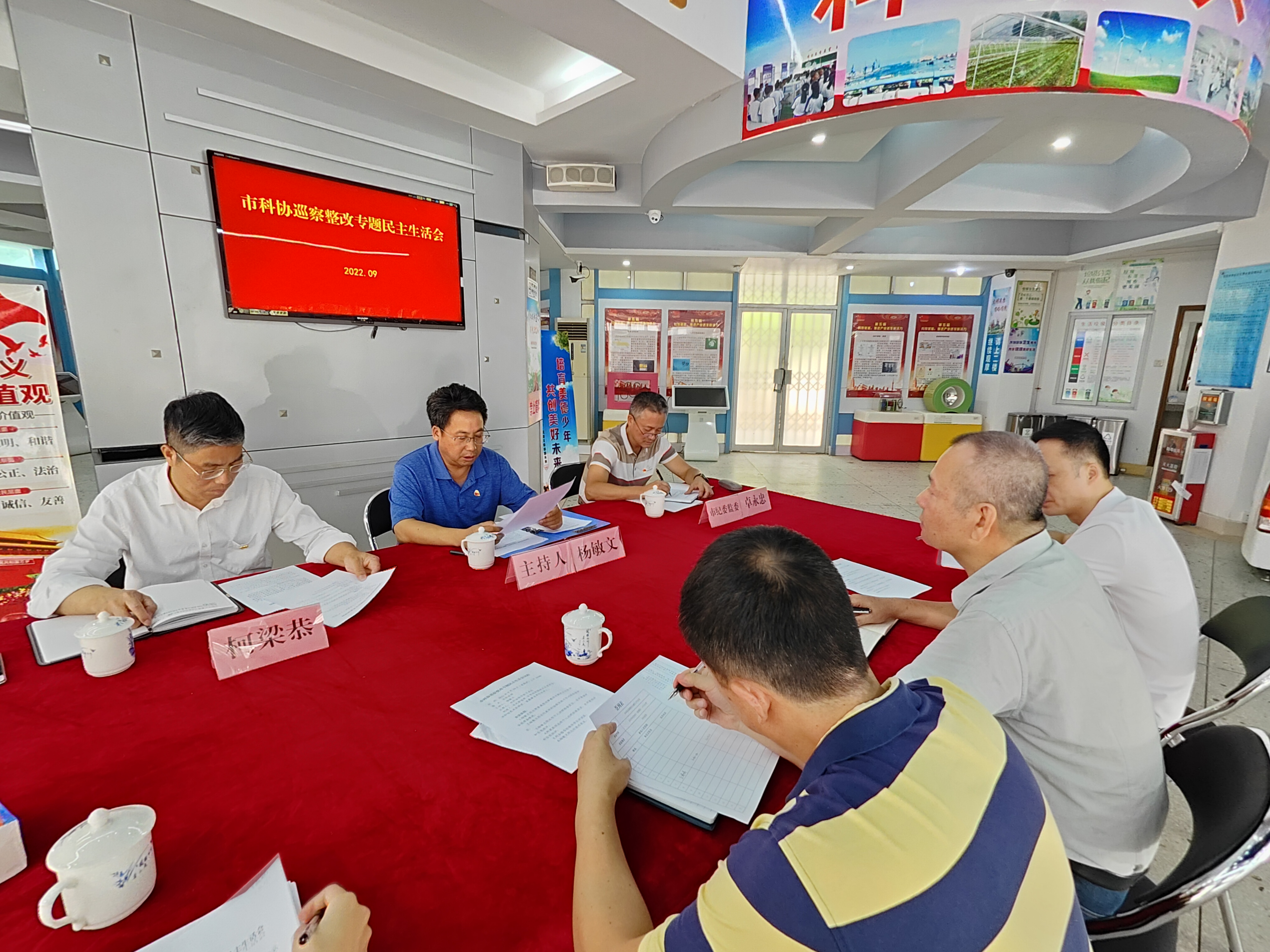 根据市委巡察工作统一部署及相关工作要求,9月29日,市科协党组巡察整改专题民主生活会召开。市纪委监委驻市工业和信息化局纪检监察组负责人卓永忠到会指导。市科协党组书记、常务副主席杨敏文,党组成员、专职副主席柯梁恭出席会议,市科协机关各部室、直属事业单位负责人列席会议。会议由杨敏文主持。