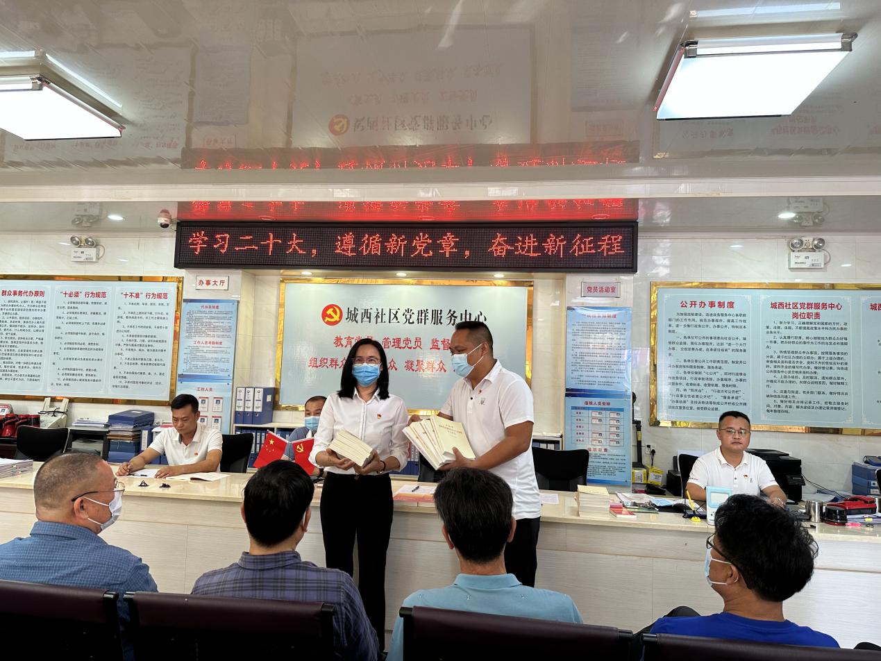 为深入学习贯彻党的二十大精神,全面准确领悟党的二十大报告提出的新思想新论断、作出的新部署新要求,教育引导党员干部在全面学习、全面把握、全面落实上下功夫,把思想和行动统一到党的二十大部署要求上来,11月29日,区科协联合挂驻的城西社区党总支部举办“学习二十大,遵循新党章,奋进新征程”主题党日活动。城区科协及社区党总支部党员代表参加活动。