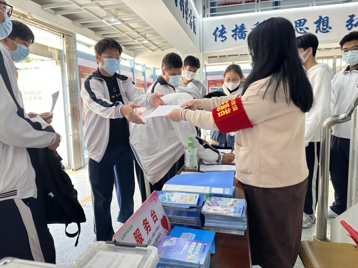 图为科技馆工作人员发放学习资料