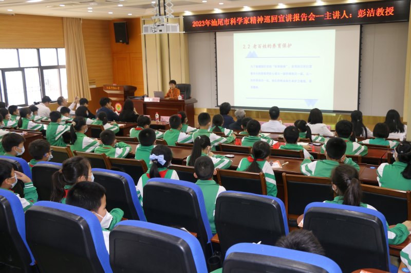 为深入贯彻落实党的二十大精神,更好地弘扬崇尚科学精神,讲好中国科学家故事,传承科学家精神,搭建科学家与公众尤其是青少年双向沟通的桥梁,激发探索科学的奥秘,培养青少年的爱国、奉献、创新精神,4月11日上午,由市科协联合市教育局、市关心下一代工作委员会举办的2023年汕尾市科学家精神巡回宣讲报告会首场报告会在汕尾市实验小学举行。报告会邀请了彭湃烈士的孙女、彭士禄院士的女儿彭洁研究员作《忠于理想的两代人——讲述彭湃烈士和彭士禄院士的故事》专题报告。市人大常委会副主任、市科协主席黄宏伟同志出席报告会并讲话。市教育局、市关工委领导及市实验小学师生代表共120人聆听了报告会。