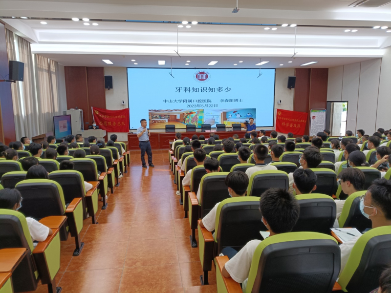 在陆丰市春源双语学校,中山大学附属口腔医院教授、主任医师李春阳博士为学生们讲解中小学生龋病的治疗和预防的专题讲座,同学们个个全神贯注,聚精会神聆听李教授的讲座,一边听一边记,对医学防蛀、自我防蛀、牙齿矫正等相关知识有了进一步的科学认识,授课过程中,李春阳博士还与同学们进行了亲切互动,培养青少年从小树立“爱牙护牙”的健康理念,增强自我口腔保健能力,在日常生活中养成良好的口腔卫生习惯。
