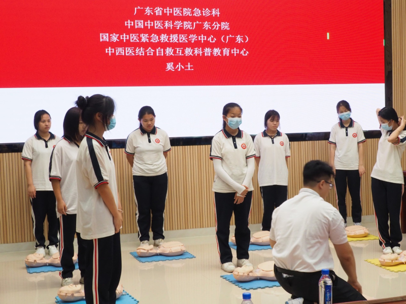 在陆河县职业技术学校报告厅里,省中医院急诊科主任奚小土博士作“基础生命支持(心肺复苏+自动体外除颤器)”专题科普报告,奚博士先从解读急救生存链的意义、识别需要急救的症状信号、掌握自救互救急救技能等方面用生动形象的事例教授学生掌握急救技能的基本知识和方法。并指导同学们利用模型进行“心脏骤停”徒手复苏现场演示,同学们争先恐后,奚博士耐心示范,将现场气氛推向了高潮。经过一次次的模拟操作和手把手示教,同学们均熟练地掌握了心肺复苏的操作要领和操作规范,进一步提高了他们的急救意识和技能。