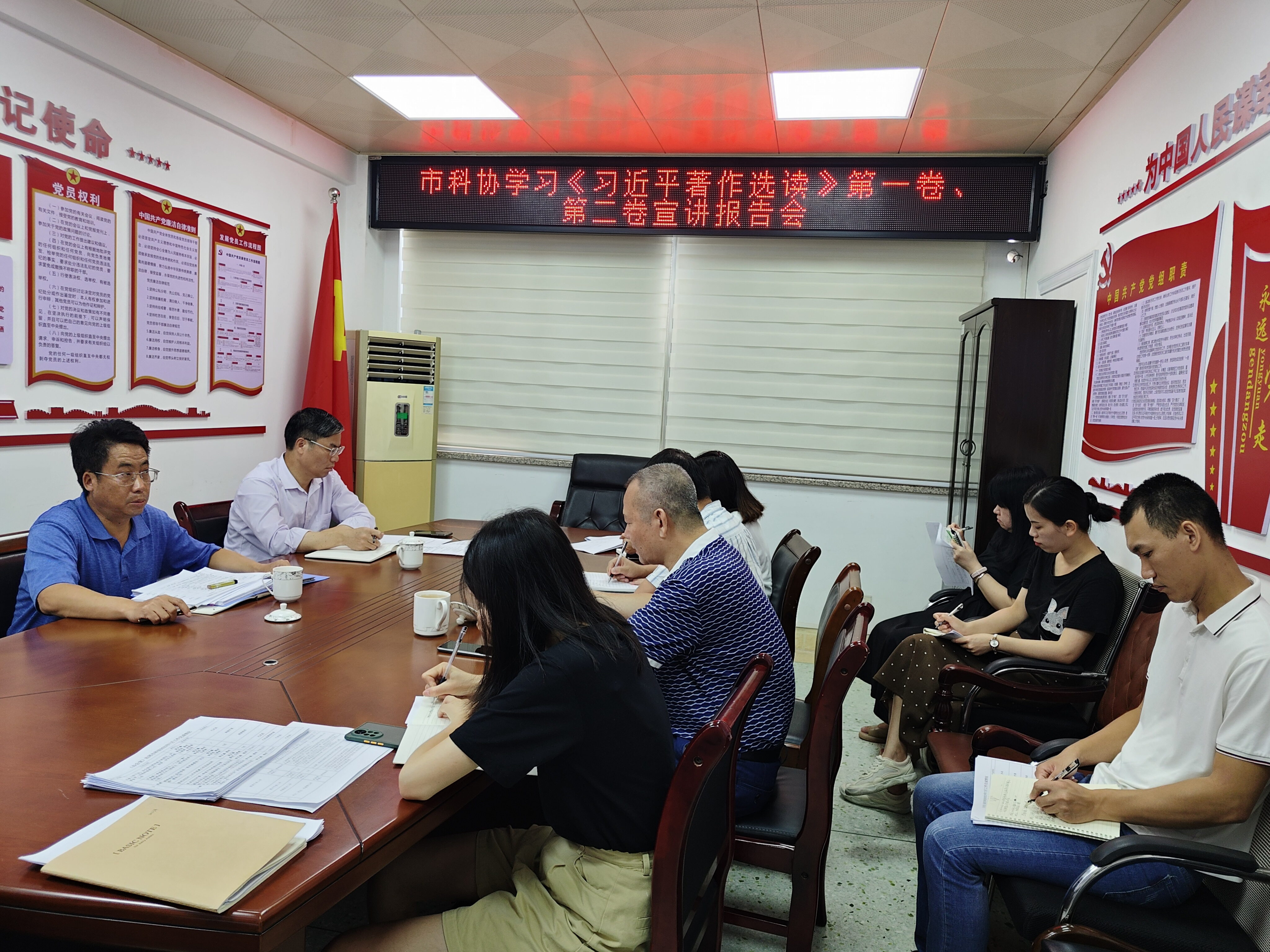 8月1日,市科协召开党组理论学习中心组(扩大)学习会暨《习近平著作选读》第一卷、第二卷宣讲报告会,市委宣讲团成员、市科协党组书记、常务副主席杨敏文同志作主题宣讲报告,市科协、市科技馆全体干部职工参加了会议。