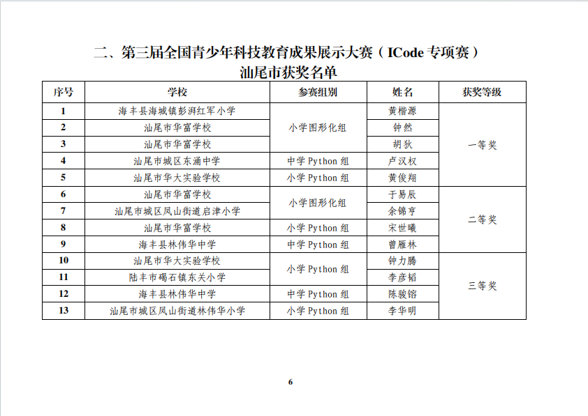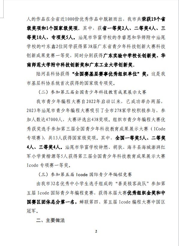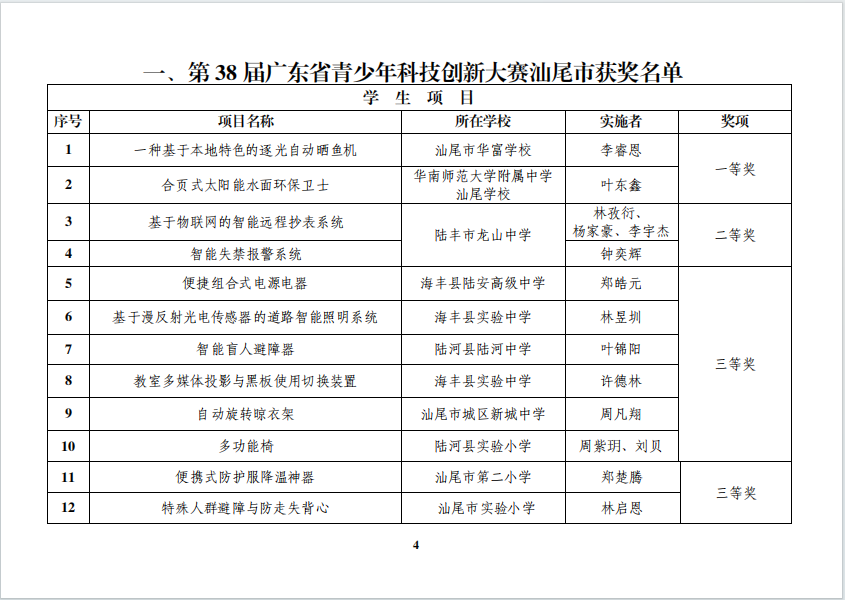 汕尾市参加全省及全国青少年科技创新大赛情况