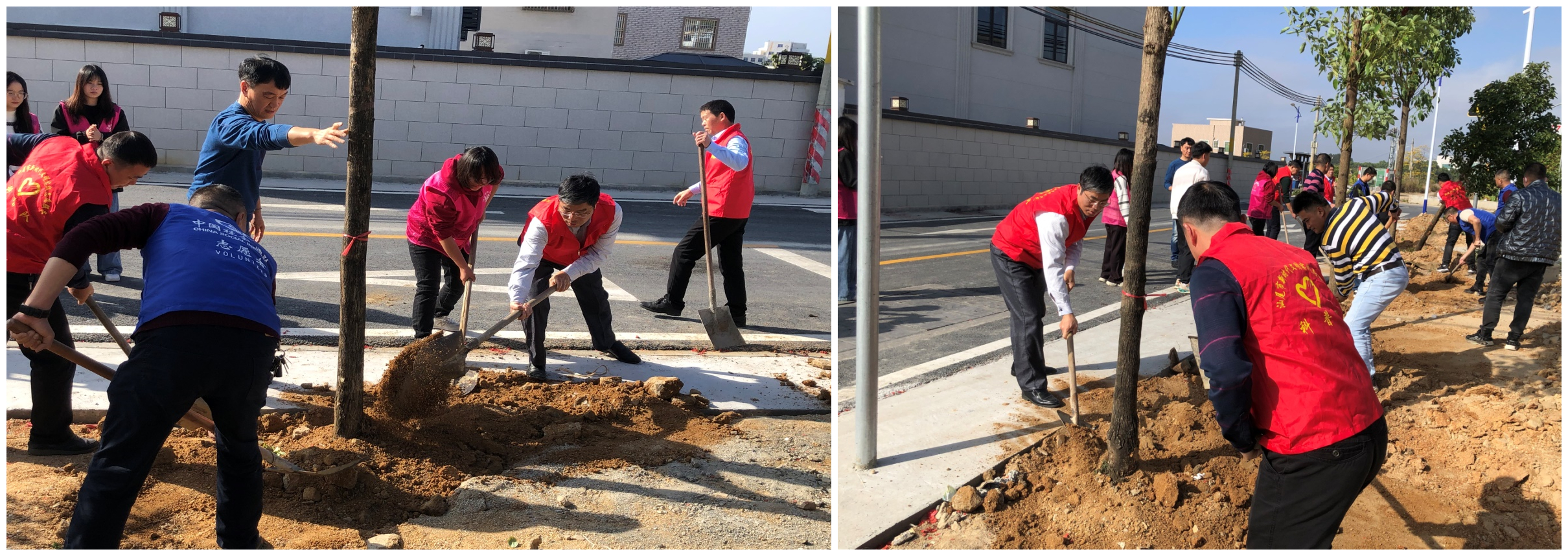 在植树活动现场,市科协、红海湾社保局、民政局相关领导与塔岭村委干部和志愿者一起挥锹铲土、扶正树苗,同心协力在村委主干道两旁种下一棵棵香樟树,开启了“绿美汕尾”科普志愿者义务植树活动序幕,为下一步助力“绿美汕尾”建设营造更加浓厚的氛围。