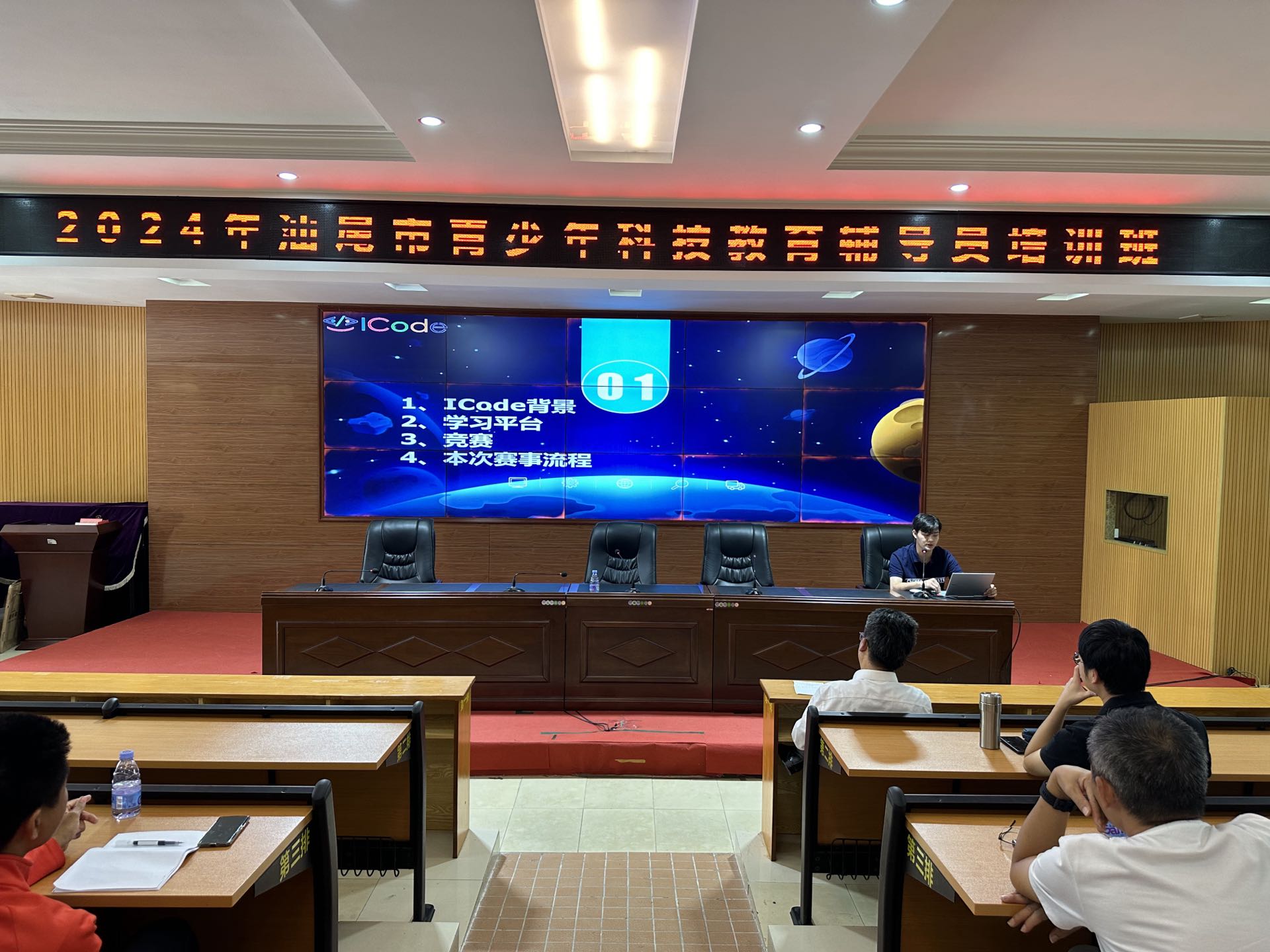 此次培训邀请了广东实验中学科技教育办公室黄柏树副主任、广东省教师继续教育学会林品宏老师和汕尾市计算机学会李俊洁老师为科技教育辅导员授课。本次培训活动上半场培训内容为编程大赛相关内容,下半场培训内容科技创新大赛相关内容。