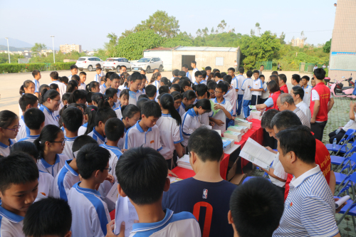 启动仪式结束后,在市科协和陆丰核电有限公司发放科普书籍专区前瞬间挤满学生,同学们争相领取了科普书籍并融入到知识的海洋里。由市科技馆和陆丰核电有限公司摆放的科普大篷车车载展品、展板专区,同学们对VR体验、健康生活、视觉体验、电磁与材料、机械传动、运动与力等科普内容迅速充满好奇。在每部科普设备前都是人头攒动,这些科普展品能将科学原理、科学现象直观地展现在同学们面前,让同学们亲身体验到科技的神奇,感受到科学带来的快乐和进步。而在展板面前,不时有学生询问核电科普志愿者关于核电安全和原理方面的疑虑和知识。