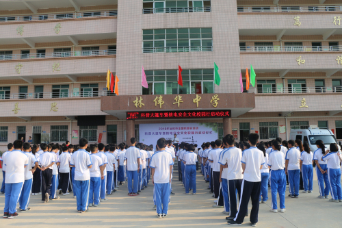 9月26日,由市科协、中广核陆丰核电有限公司主办,市科技馆、红海湾开发区关工委、经发局、教育局、林伟华中学承办的2018年汕尾市全国科普日活动——科普大篷车暨核电安全文化校园行在红海湾开发区林伟华中学启动。市科协党组书记、常务副主席范志能、中广核陆丰核电有限公司综合管理部公共宣传模块主任张春风,以及红海湾开发区相关单位主要负责同志、林伟华中学学生等300多人参加启动仪式。红海湾开发区管委会副主任田得宏主持启动仪式。