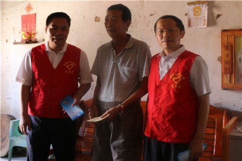 市科技局局长叶汉汆(左一)和市科协常务副主席范志能(右一)慰问五保户