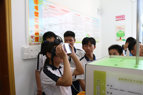 图为学生正在体验VR设备